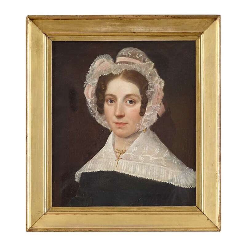 American School 19th century portrait of a lady in a lace cap and shawl