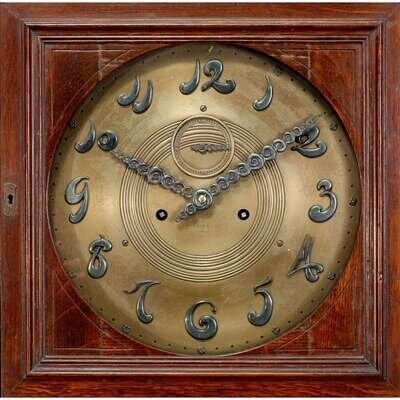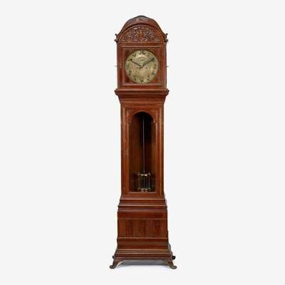 Aesthetic Movement carved oak tall case clock tiffany & co., new york, ny, circa 1900