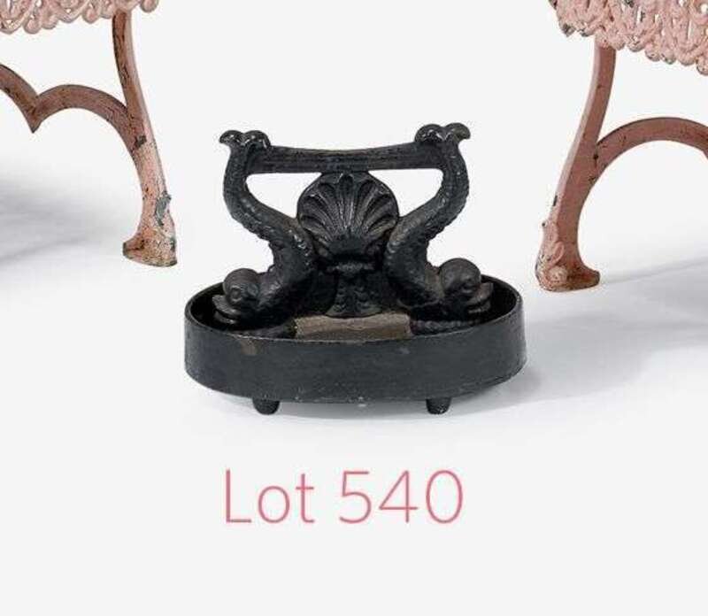 Painted double dolphin and shell-form cast-iron boot scrape baltimore, md, 19th century