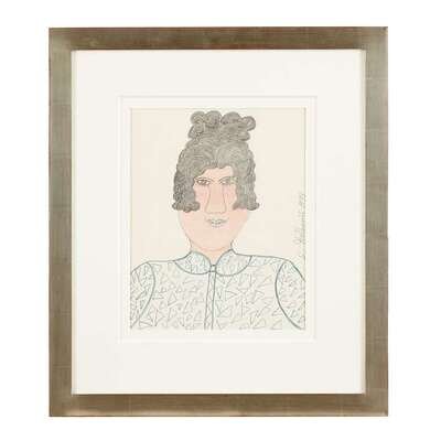 Inez Nathaniel-Walker (1911-1990) four portraits: man in blue shirt, woman in triangle-patterned blouse,