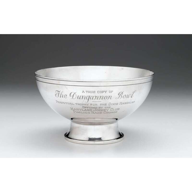 Footed bowl engraved 'A true copy of The Dungannon Bowl Perpetual trophy for the Dixie Handicap Offered by the Maryland Jockey Club Pimlico Race Course won by Wise Ship owned Milton Ritzenberg'