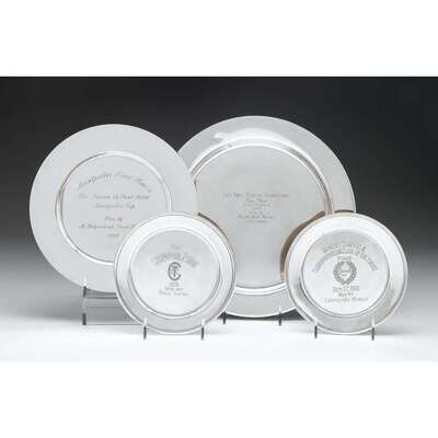 FOUR STERLING SILVER CIRCULAR TROPHY DISHES VARIOUS MAKERS, MID TO LATE 20TH CENTURY