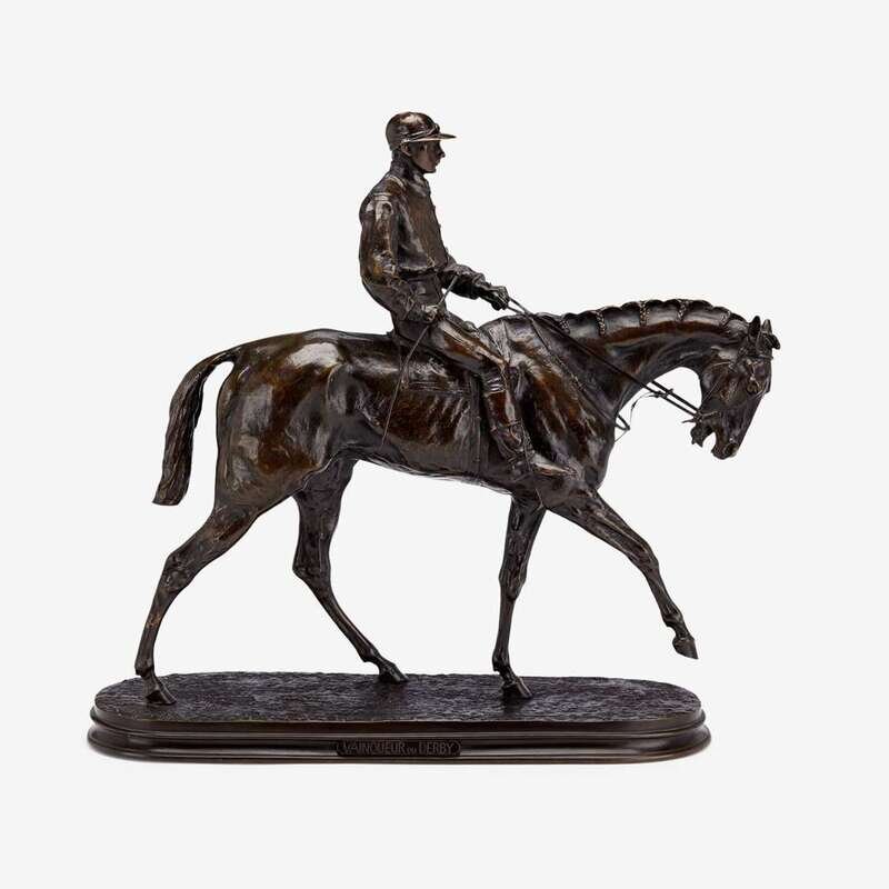 Signed and dated 'P.J. Mêne 1863'and mounted with plaque engraved 'Vainqueur du Derby', bronze with dark brown patina