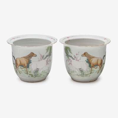 PAIR CHINESE EXPORT PORCELAIN FAMILLE ROSE DECORATED JARDINIÈRES 19TH CENTURY