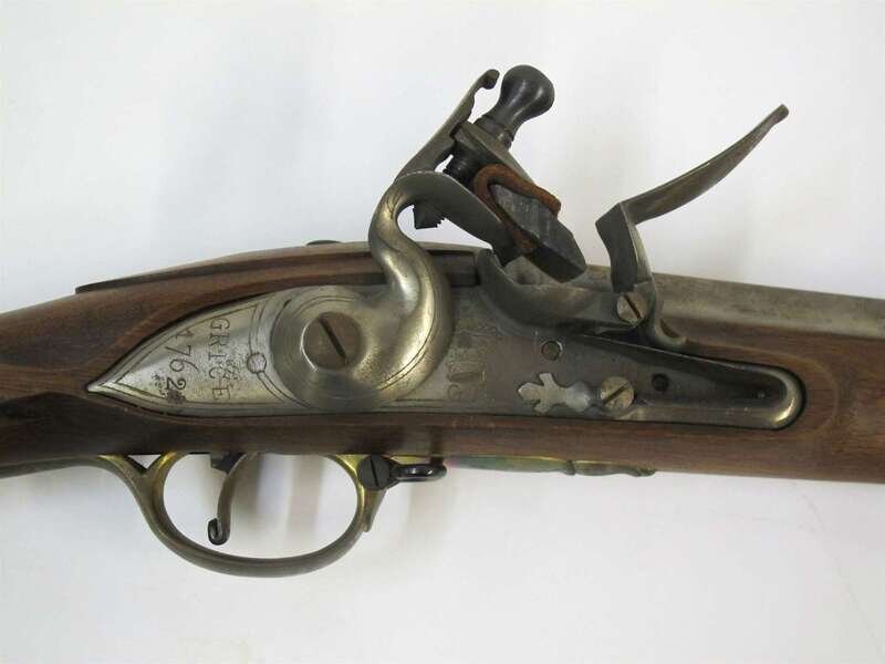The lock plate marked 'Grice/1762' behind the hammer and 'crown/ GR' in front of the hammer.