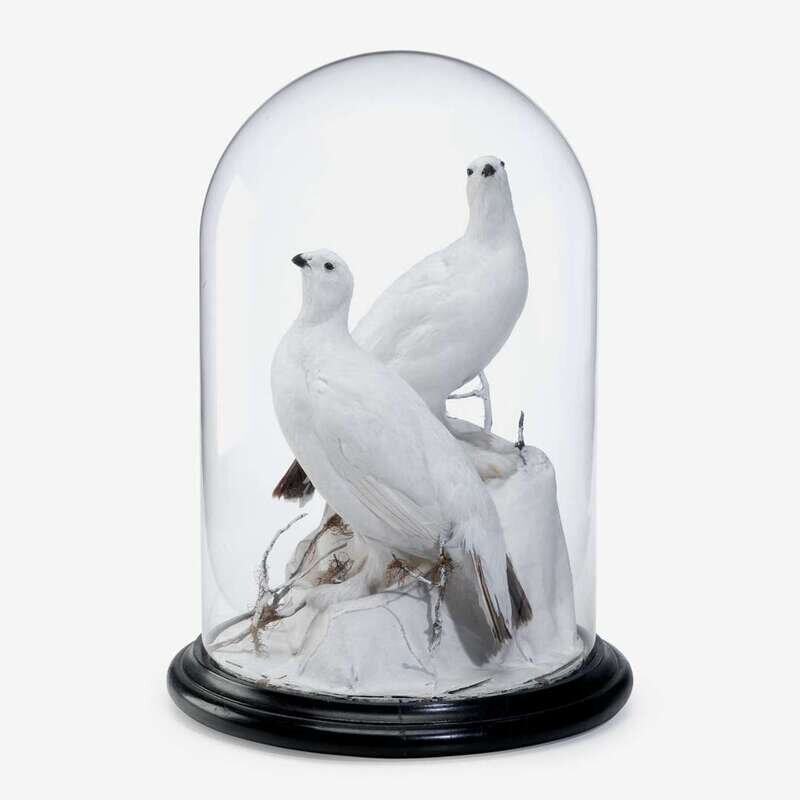 PAIR OF VICTORIAN TAXIDERMIED PTARMIGAN UNDER GLASS DOME late 19th century