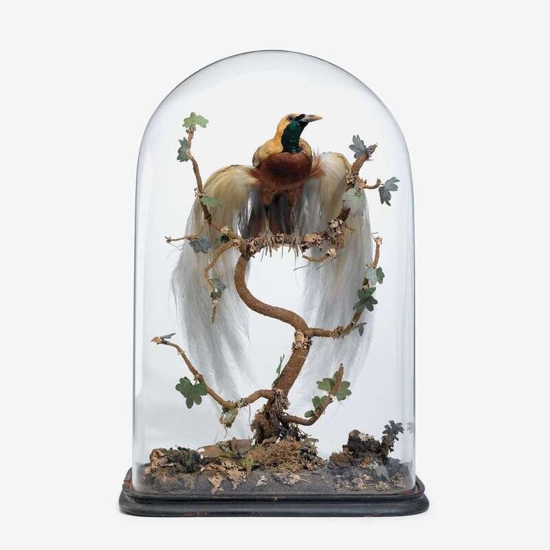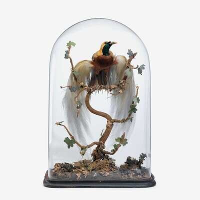 VICTORIAN TAXIDERMIED BIRD OF PARADISE UNDER GLASS DOME late 19th century