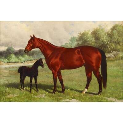 HENRY STULL (AMERICAN 1851-1913) MARE AND FOAL
