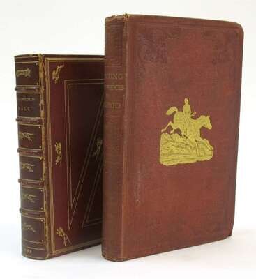 [APPERLEY (CHARLES J)] "Nimrod", Hunting Reminiscences, FIRST EDITION, engraved frontispiece, additional title and plates, illustrations in the text, original pictorial pebble-grain cloth gilt, rubbed, corners bumped, hinges splitting, 8vo,London, Rudolph Ackerman, 1843--[SURTEES (ROBERT SMITH)] Hillingdon Hall, or The Cockney Squire, FIRST EDITION, 12 hand-colored plates, contemporary pictorial crushed red morocco gilt, rubbed, spine gilt in compartments, 8vo, London, John C. Nimmo, 1888