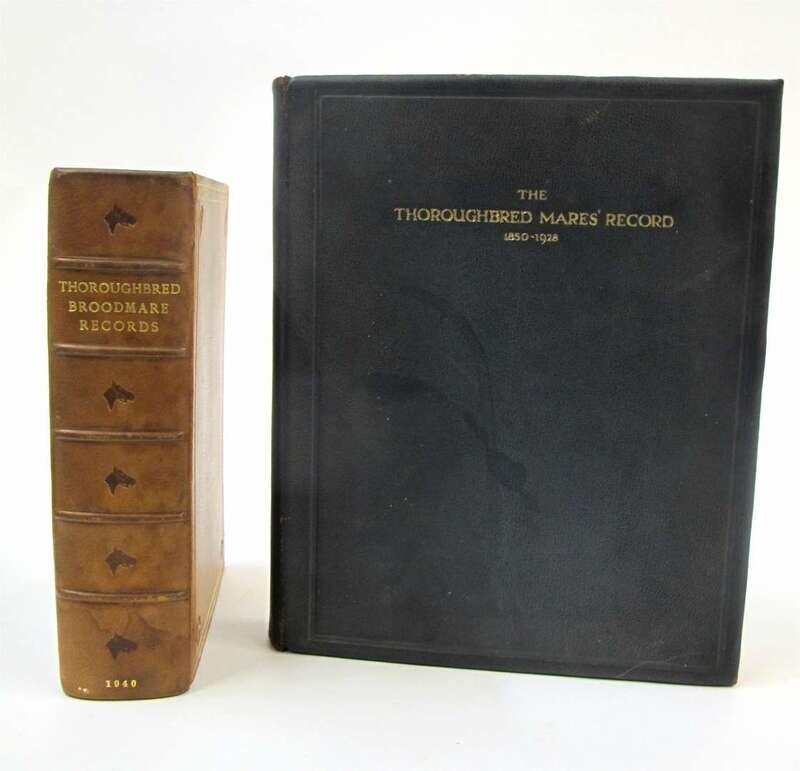 MAINWARING SHARP (J.F., compiler) The Thoroughbred Mares' Records, showing the Female Ascendancy... tracing back to Eclipse, Herod, and Matchem, also the pedigrees and Winnings of the Principal Sires since 1850, photographic illustrations, calf, rubbed, 4to, London, Galopin, 1928--Thoroughbred Broodmare Records, 1935-1939, calf, 8vo, [for subscribers], The Blood Horse, Lexington, KY (2).