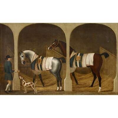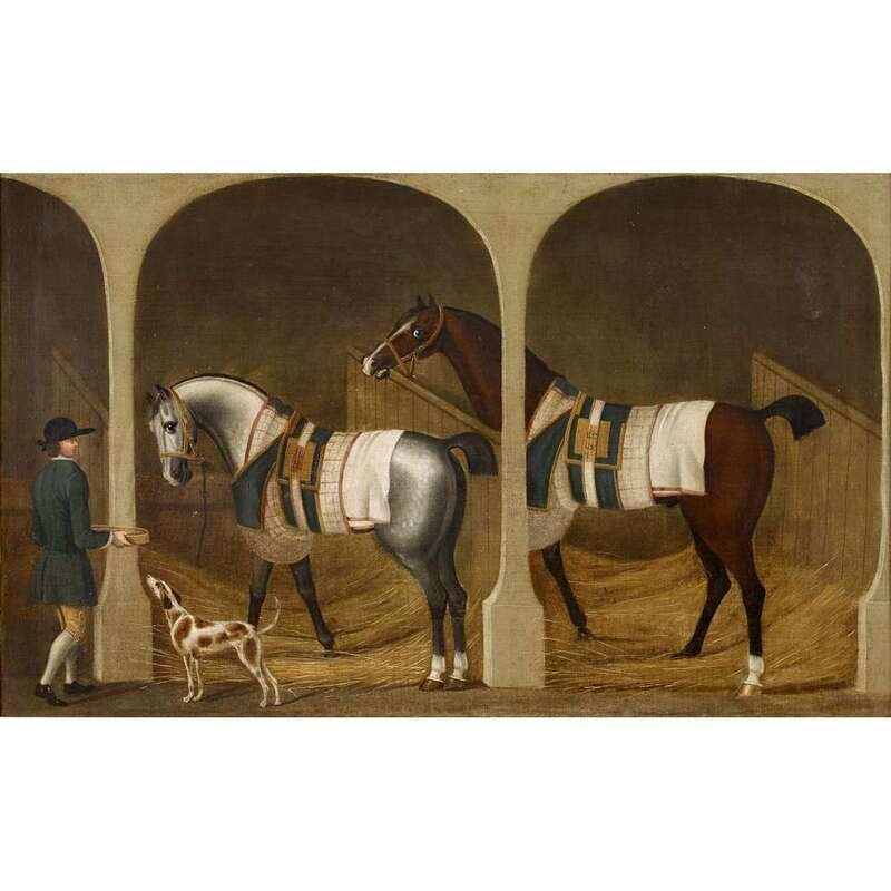 CIRCLE OF JAMES SEYMOUR (BRITISH 1702-1752) RACEHORSES IN A STABLE