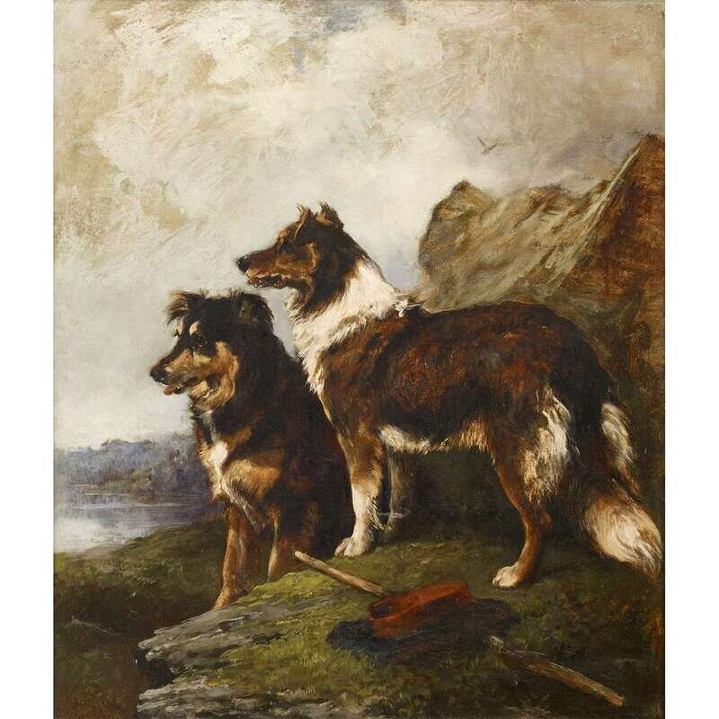 JOHN EMMS (BRITISH 1843-1912) TWO COLLIES AWAITING THEIR MASTER