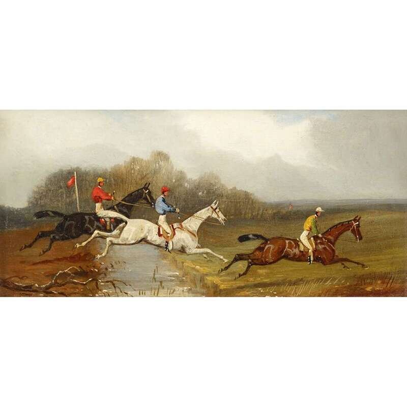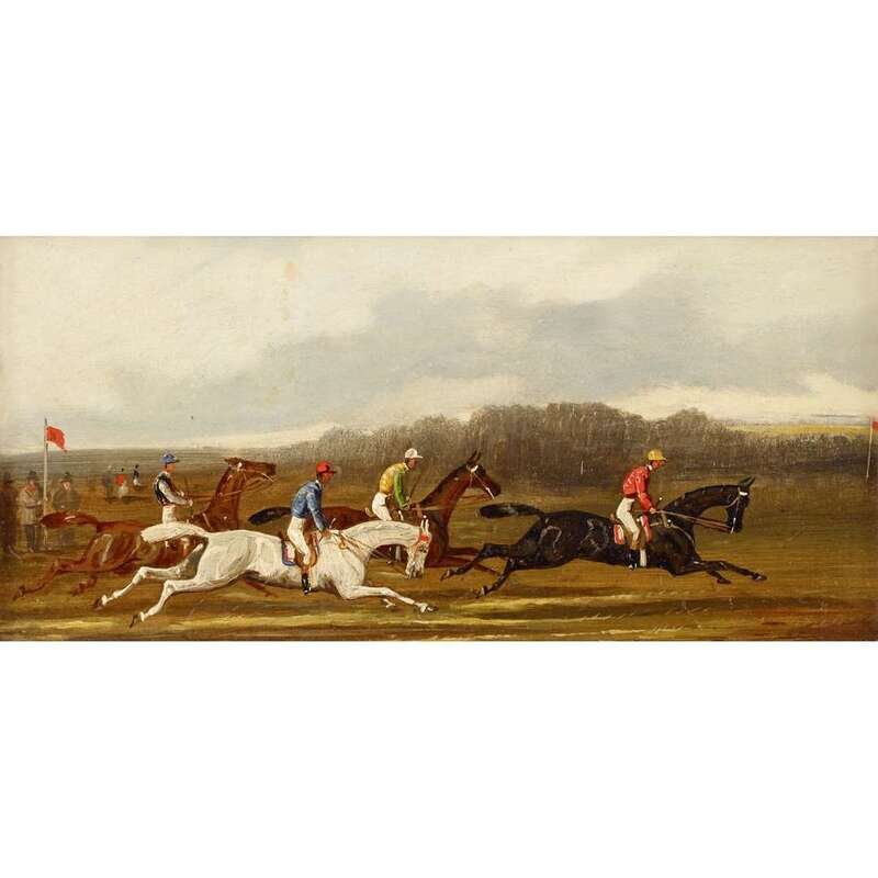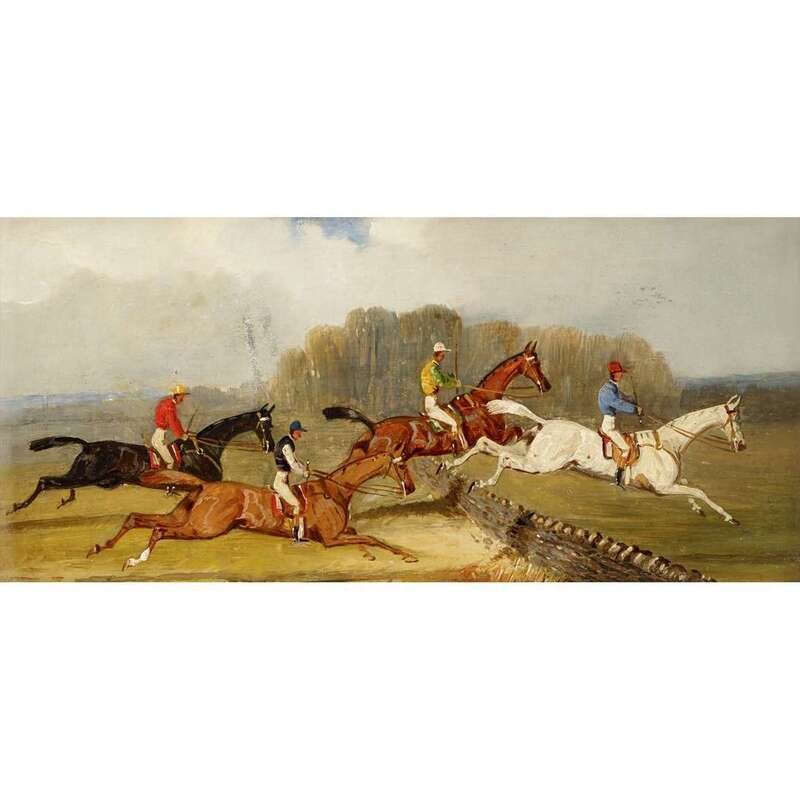 MANNER OF SAMUEL HENRY ALKEN (BRITISH 1810-1894) DOWN THE STRETCH; OVER THE FENCE; AND A COMPANION