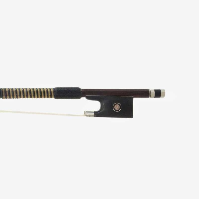 Silver-mounted ebony frog, octagonal pernambuco stick unstamped.