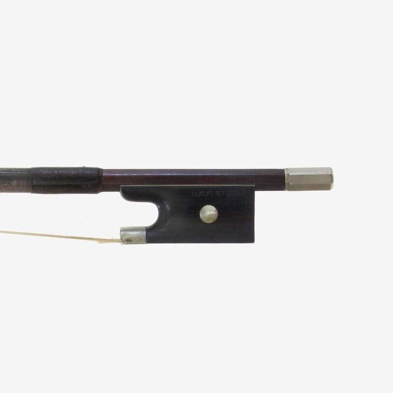 Nickel-mounted ebony frog stamped: HRP STUDENT, round pernambuco stick.