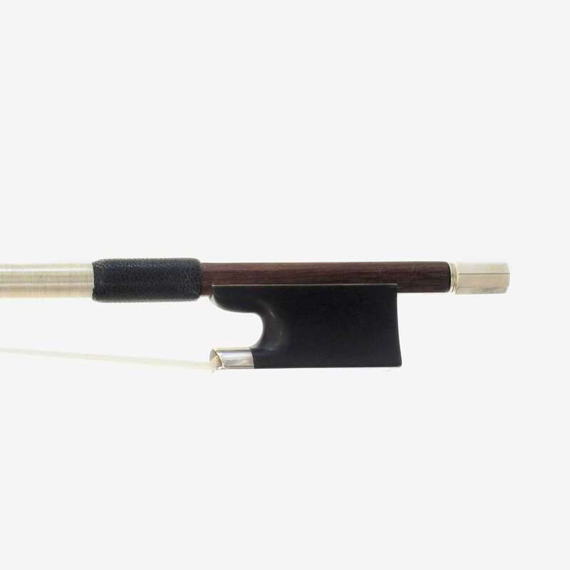 Silver-mounted ebony frog, round pernambuco stick unstamped.