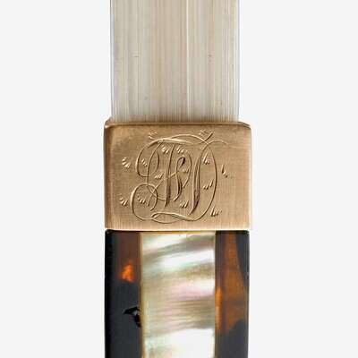 Gold mounted tortoiseshell frog, engraved on the gold ferulle: (monogram) F D, octagonal pernambuco stick stamped: L. NEUNER.