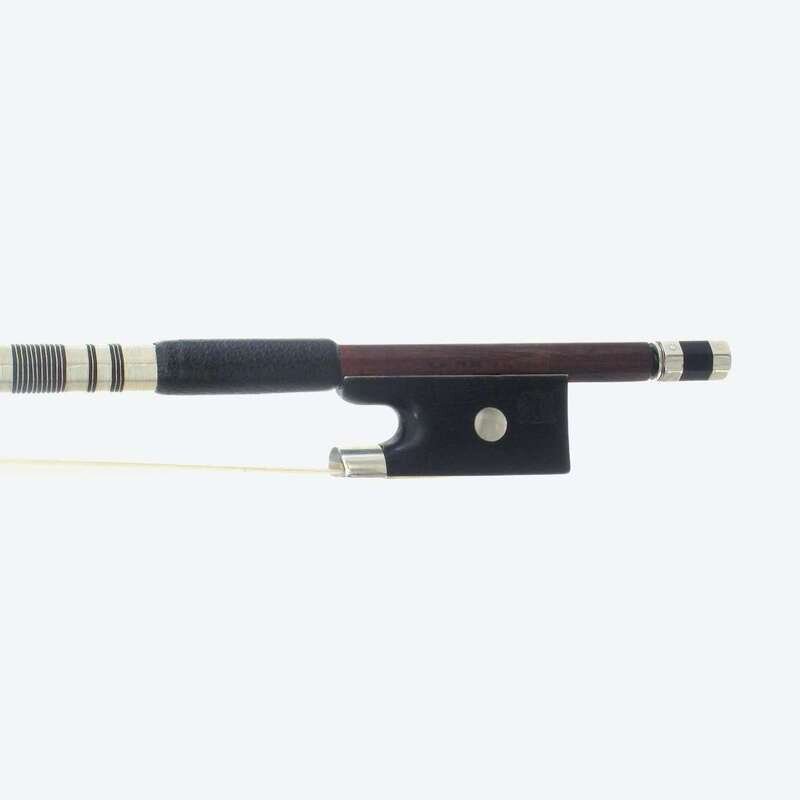 Silver-mounted ebony frog, round pernambuco stick stamped: H. R. PFRETZSCHNER.