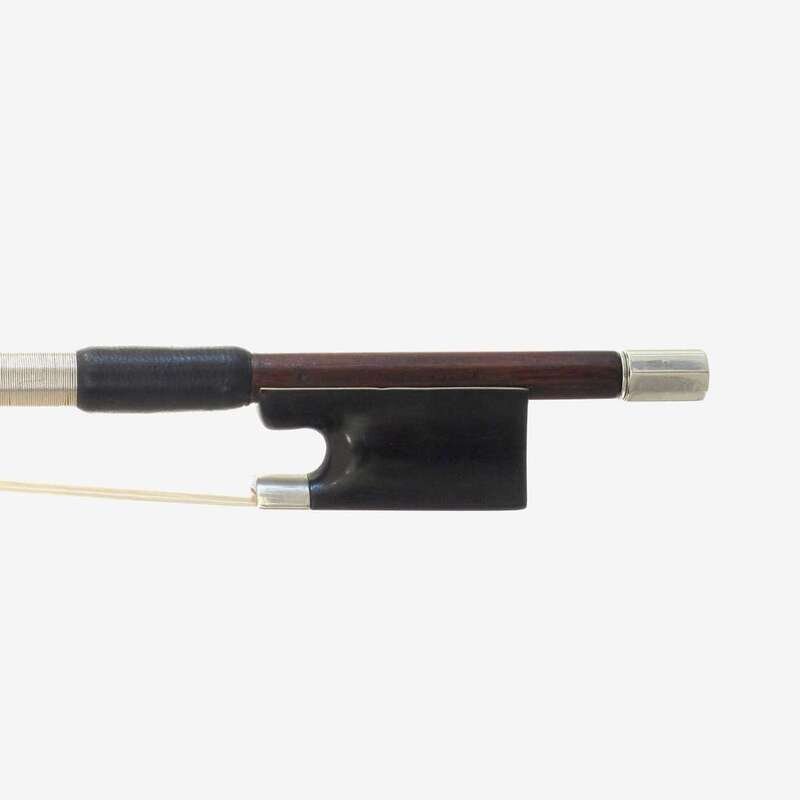 Silver-mounted ebony frog, octagonal pernambuco stick stamped: *ALBERT NURNBERGER*.