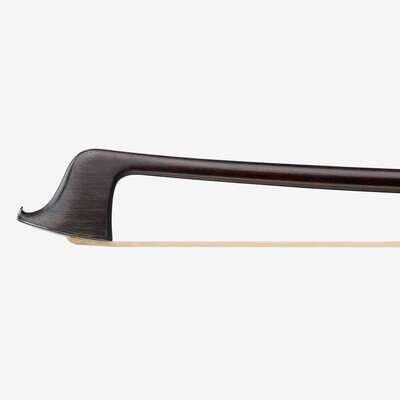 Silver-mounted ebony frog, round pernambuco stick stamped: JAS. TUBBS.