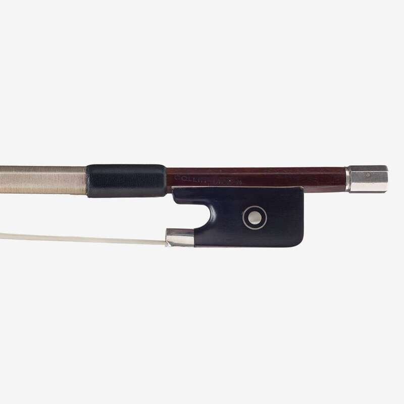Silver-mounted ebony frog, round pernambuco stick stamped: COLLIN-MEZIN.