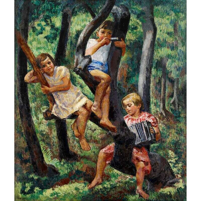 FAYE (SWENGEL) BADURA (AMERICAN 1904-1991) THREE CHILDREN IN A TREE
