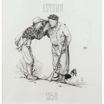 NORMAN ROCKWELL (AMERICAN, 1894-1978) "TWO OLD MEN AND DOG: HUNTING"