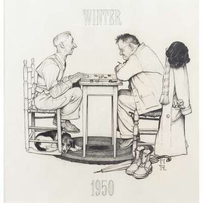 NORMAN ROCKWELL (AMERICAN, 1894-1978) "TWO OLD MEN AND DOG: CHECKERS"