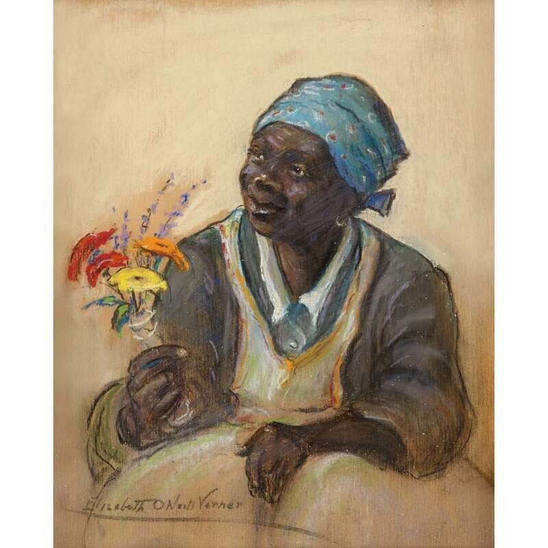 ELIZABETH O'NEILL VERNER (AMERICAN 1883-1979) PORTRAIT OF A WOMAN WITH A BOUQUET OF FLOWERS
