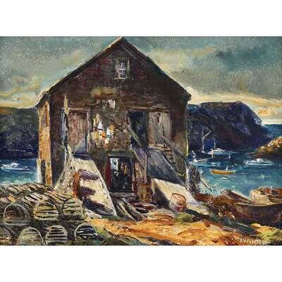 ANDREW WINTER (AMERICAN 1893-1958) "FISH HOUSE MONHEGAN"