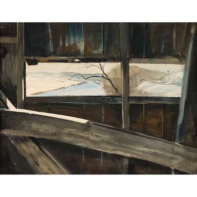 JOHN W. MCCOY (AMERICAN 1910-1989) "28 DEGREES, THE COVERED BRIDGE"