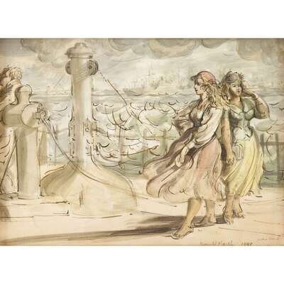 REGINALD MARSH (AMERICAN 1898-1954) NEW YORK HARBOR SCENE