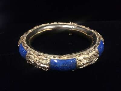 A lapis lazuli and fourteen karat gold bangle bracelet