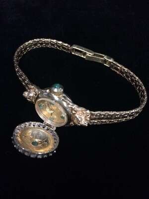 A diamond, emerald and fourteen karat gold covered dial bracelet watch, Igor Carl Faberge