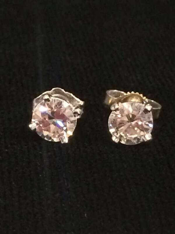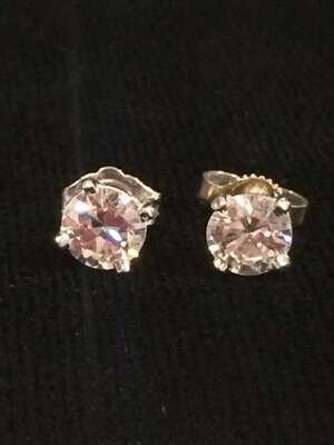 A pair of diamond and fourteen karat white gold stud earrings