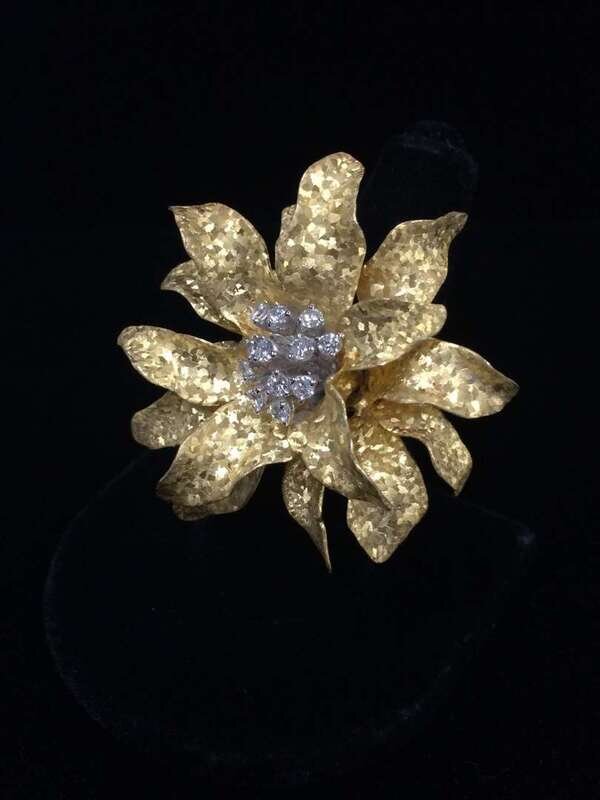 designed as a flower centering full-cut diamonds; total diamond weight approximately: 0.50 carat.