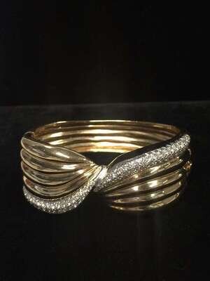 hinged twisted fluted gold with pavé-set diamond accents; total diamond weight approximately: 2.70 carats.