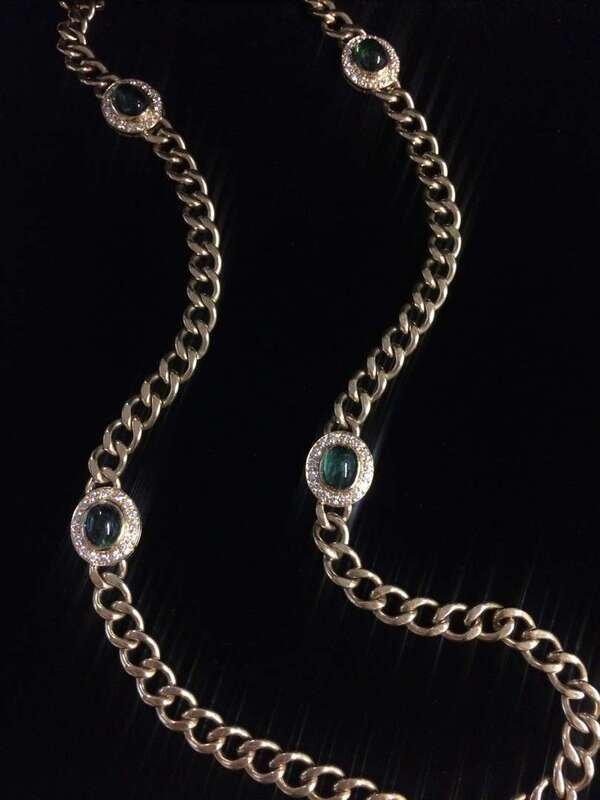 curb link with oval cabochon green tourmalines in full-cut diamond surrounds; total diamond weight approximately: 1.00 carat.