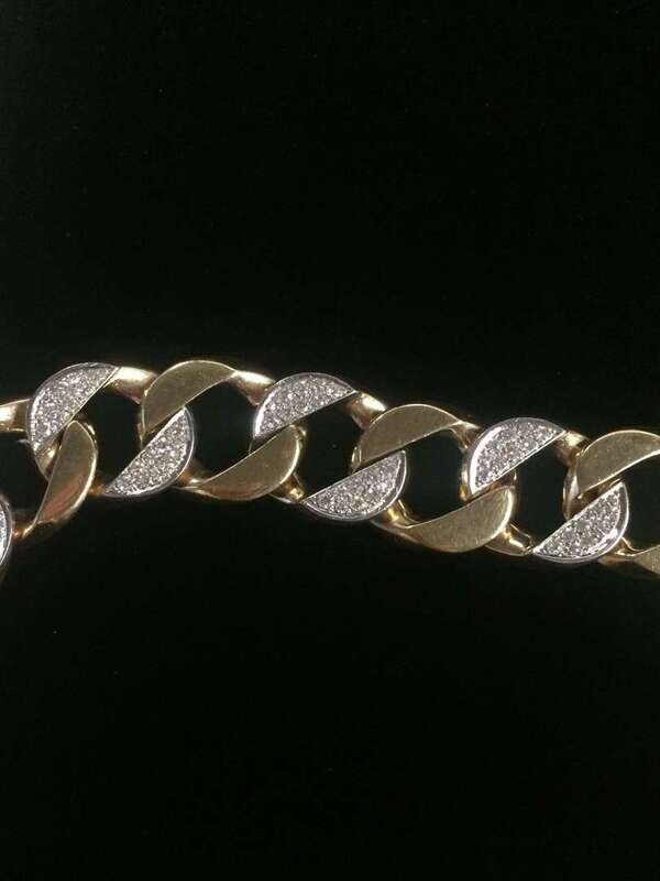 flat curb link with alternating pavé-set diamond links; total diamond weight approximately: 1.00 carat.
