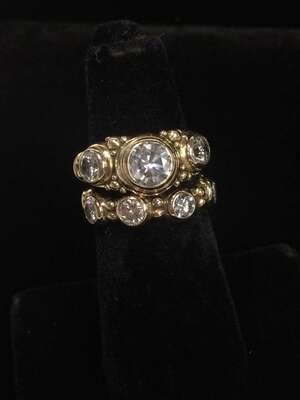A diamond and fourteen karat gold ring and band