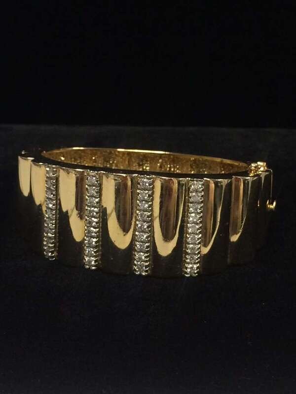 hinged polished fluted gold with full-cut diamond accents: total diamond weight approximately: 1.05 carats.