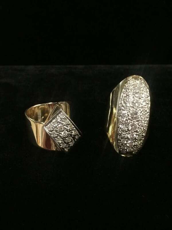 both centering pavé-set diamonds; total diamond weight approximately: 1.75 carats.
