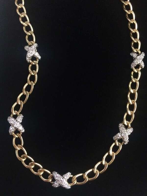 curb link with five diamond-set Xs; total diamond weight approximately: 1.65 carats; maker's mark for Hammerman Bros.