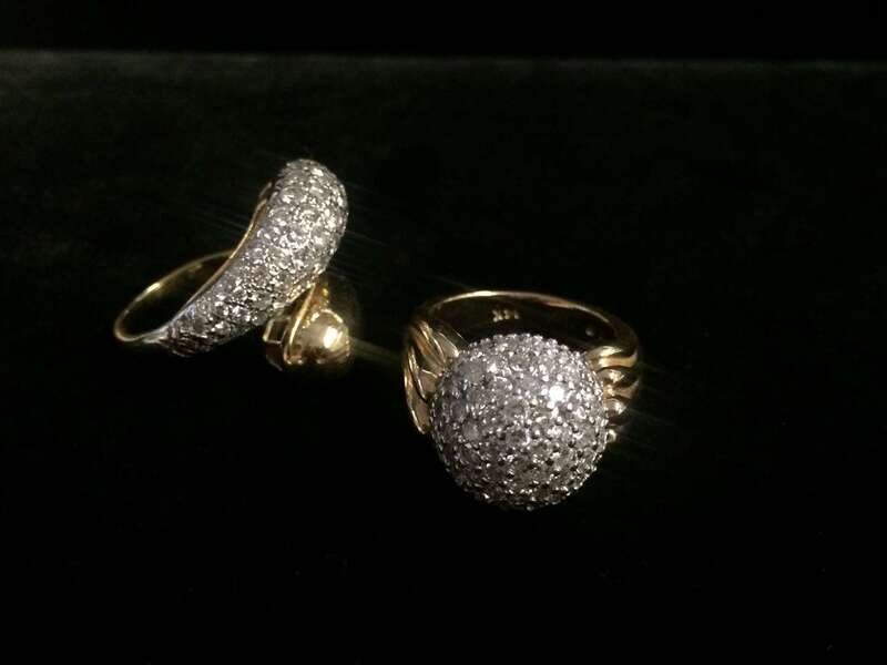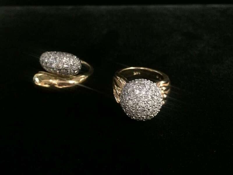 including fourteen and eighteen karat gold; both with pavé-set diamonds; total diamond weight approximately: 2.85 carats.