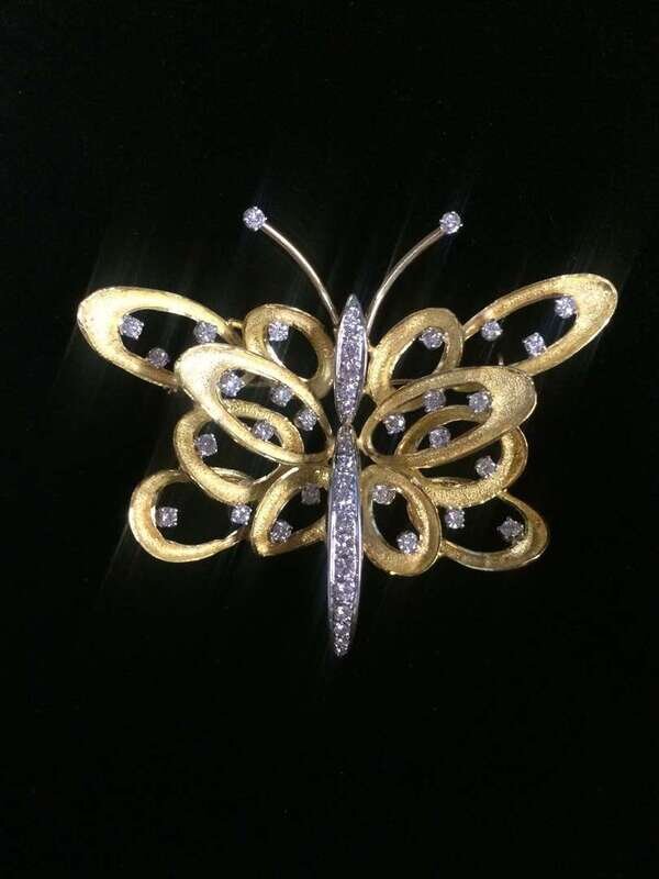 designed as a butterfly set with full-cut diamonds; total diamond weight approximately: 1.55 carats.