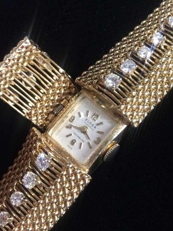 A diamond and fourteen karat gold covered dial bracelet watch, Eloga