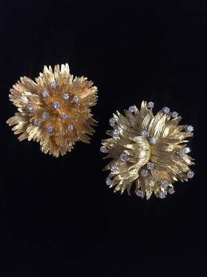 foliate motif with textured leaves set with round brilliant-cut diamonds; total diamond weight approximately: 3.25 carats.