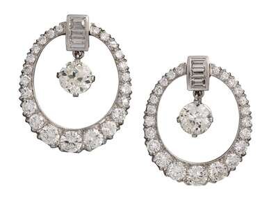 A pair of diamond and platinum earrings