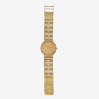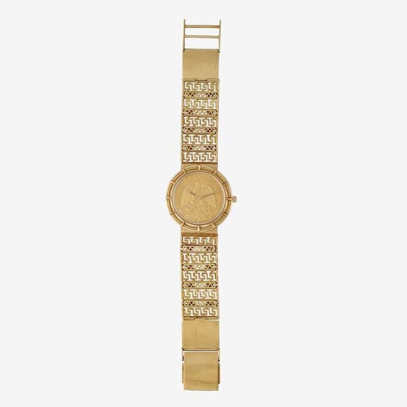 An eighteen karat gold fifty Peso coin cased automatic bracelet watch