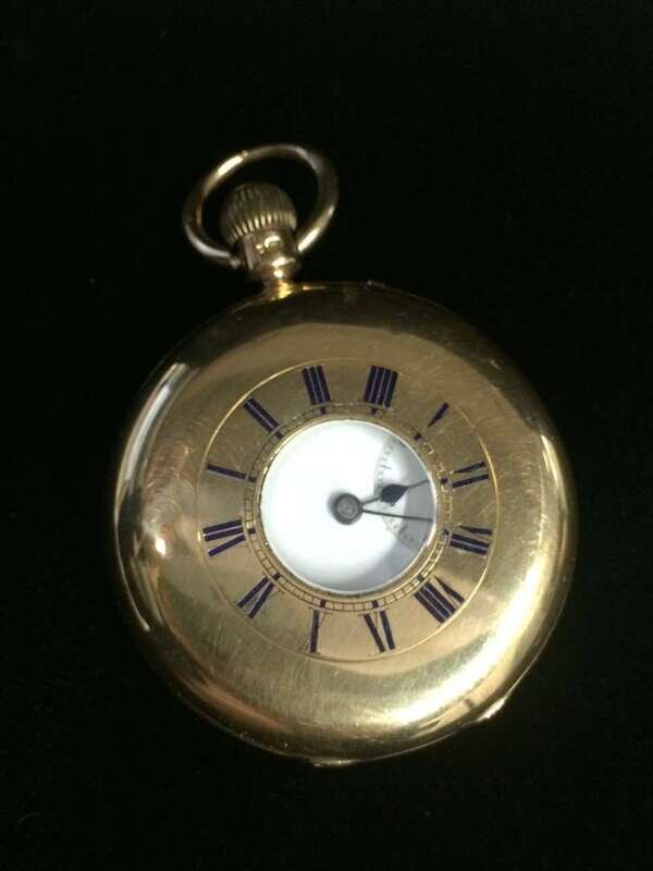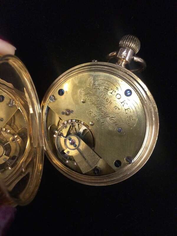 An eighteen karat gold demi-hunter pocket watch, H. Stokes with fourteen karat gold chain kensington 1881